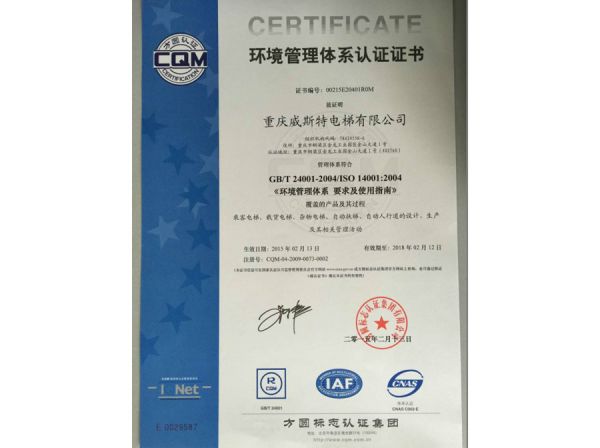 环境管理体系认证证书
