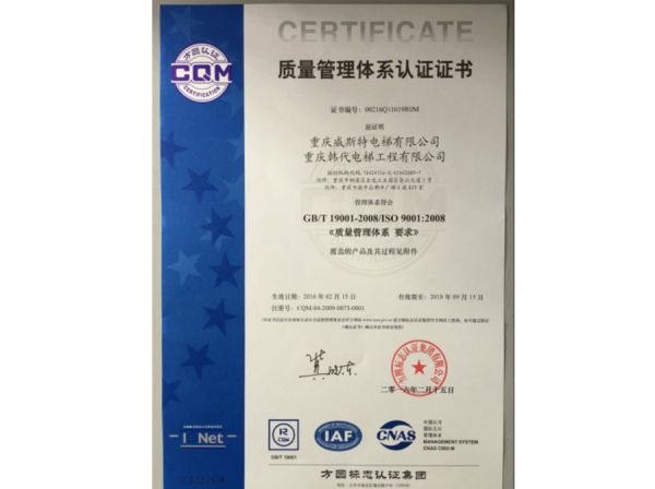 质量管理体系认证证书