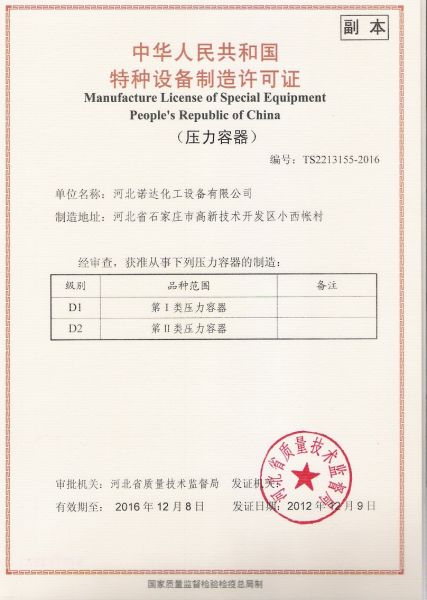 特种设备制造许可证