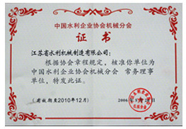 中国水利企业协会机械分会证书