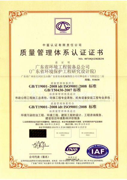 质量管理体系认证证书