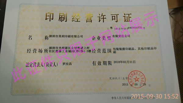 英利印刷经营许可证