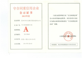 守合同重信用企业公示证书2013年度